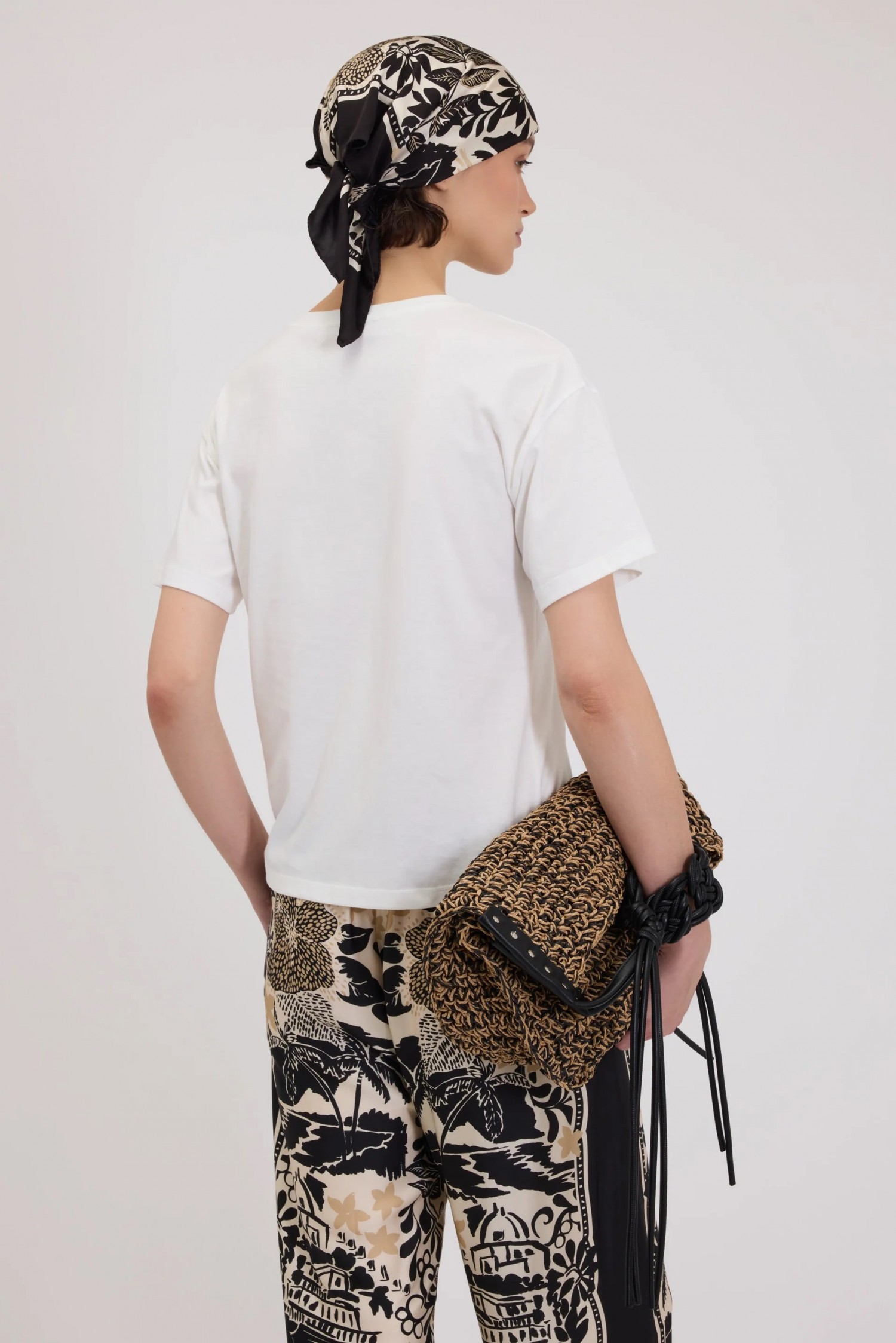 Koszulka z bawełnianej dzianiny o regularnym kroju z dwukolorowym nadrukiem tropikalnym i termoprzylepnymi kryształkami.